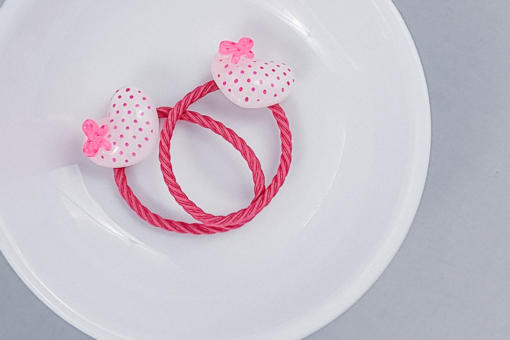 This listing is for a 2-pack of our Polka Heart Hair Ties. Perfect for little pigtails.